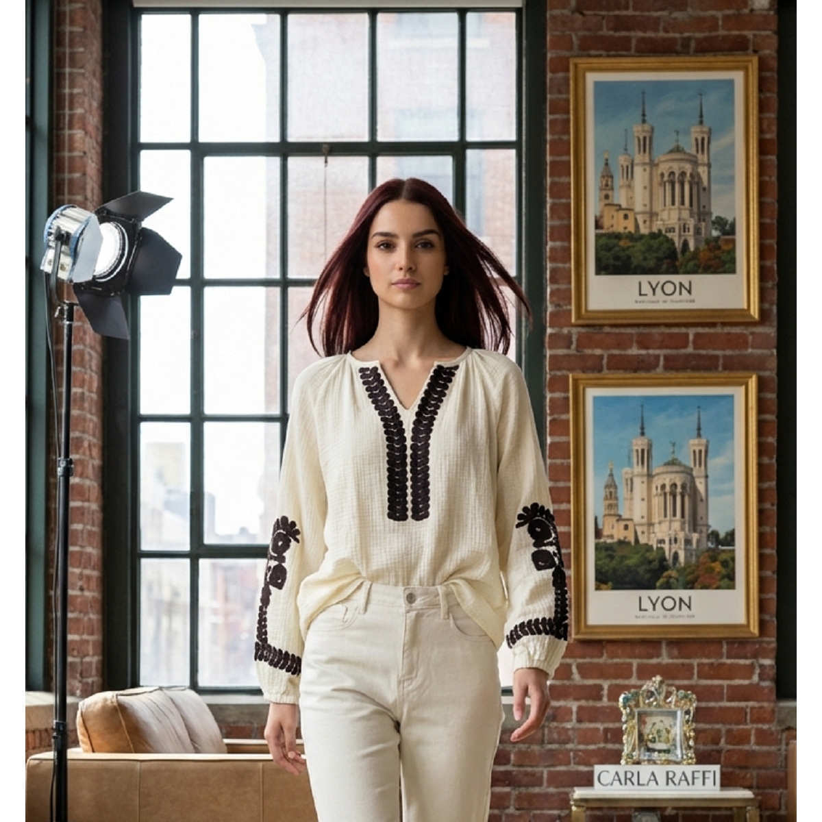Scarpy creation blouse brodee beige