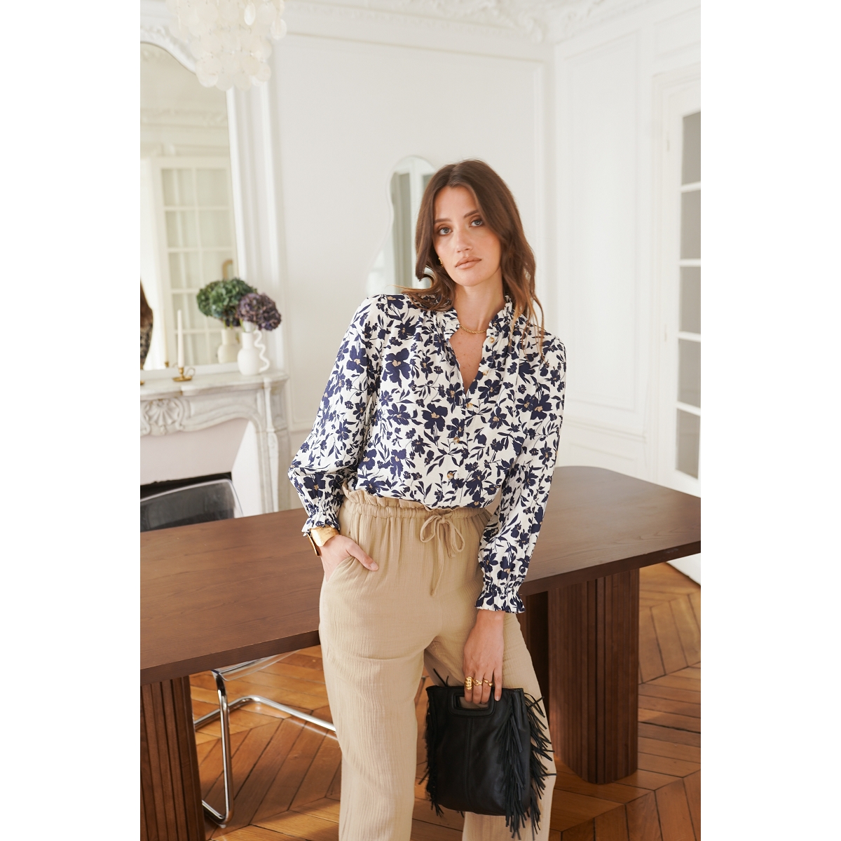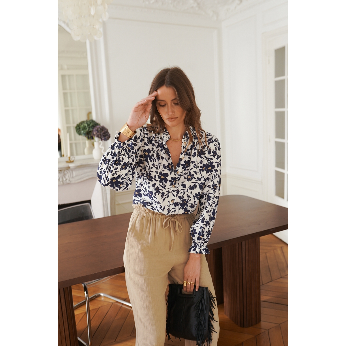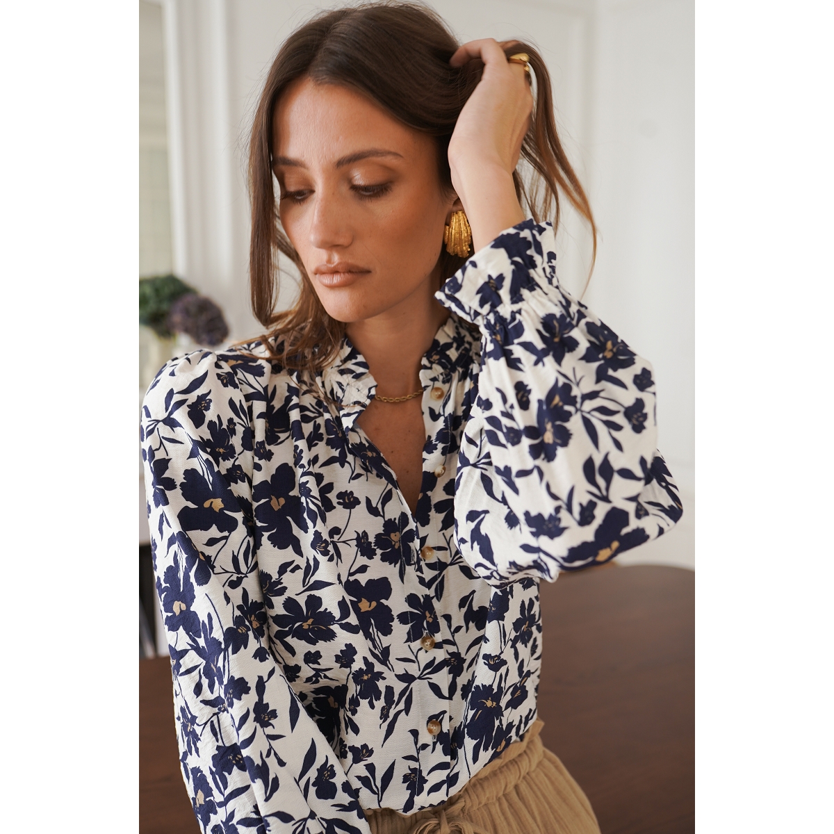 Le chemisier affiche également une allure agréablement décontractée.