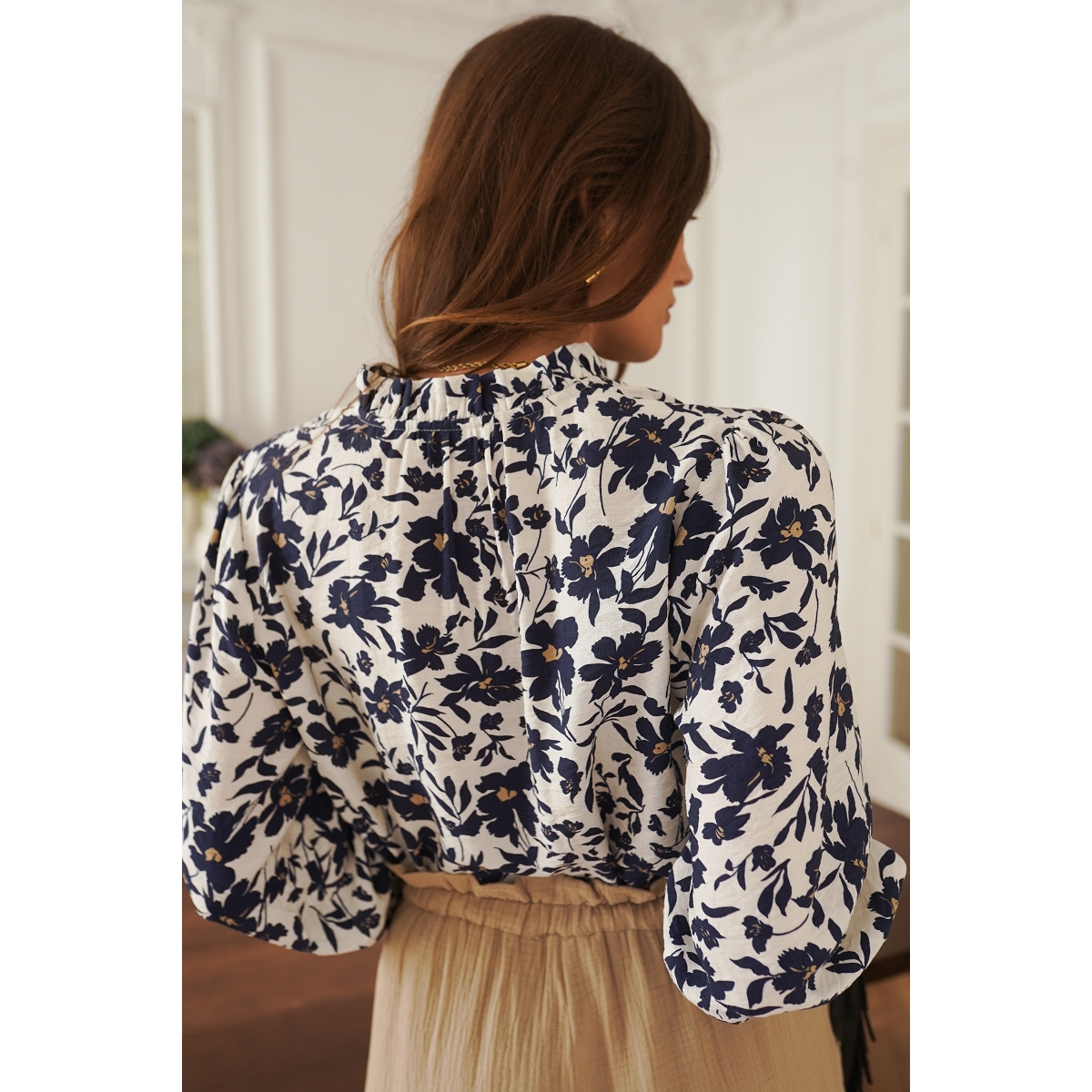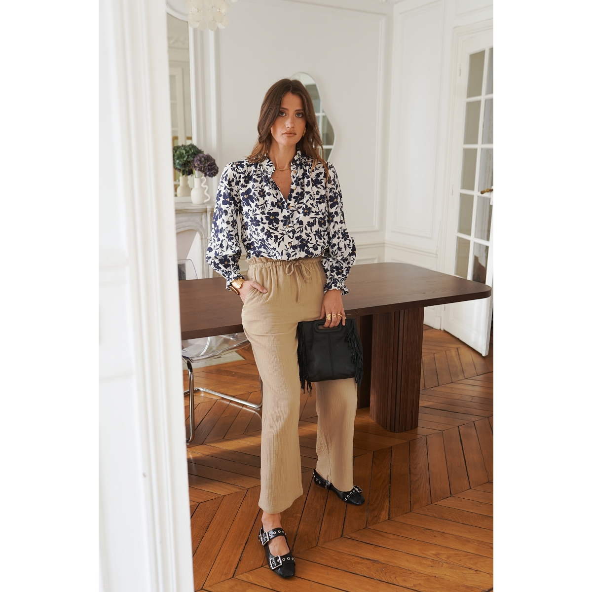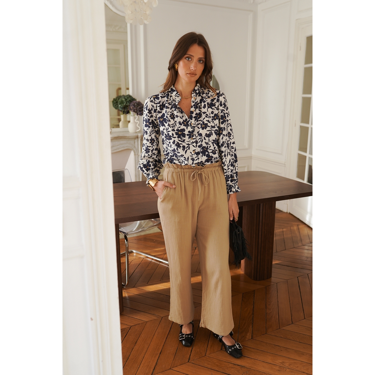 Le chemisier affiche également une allure agréablement décontractée.