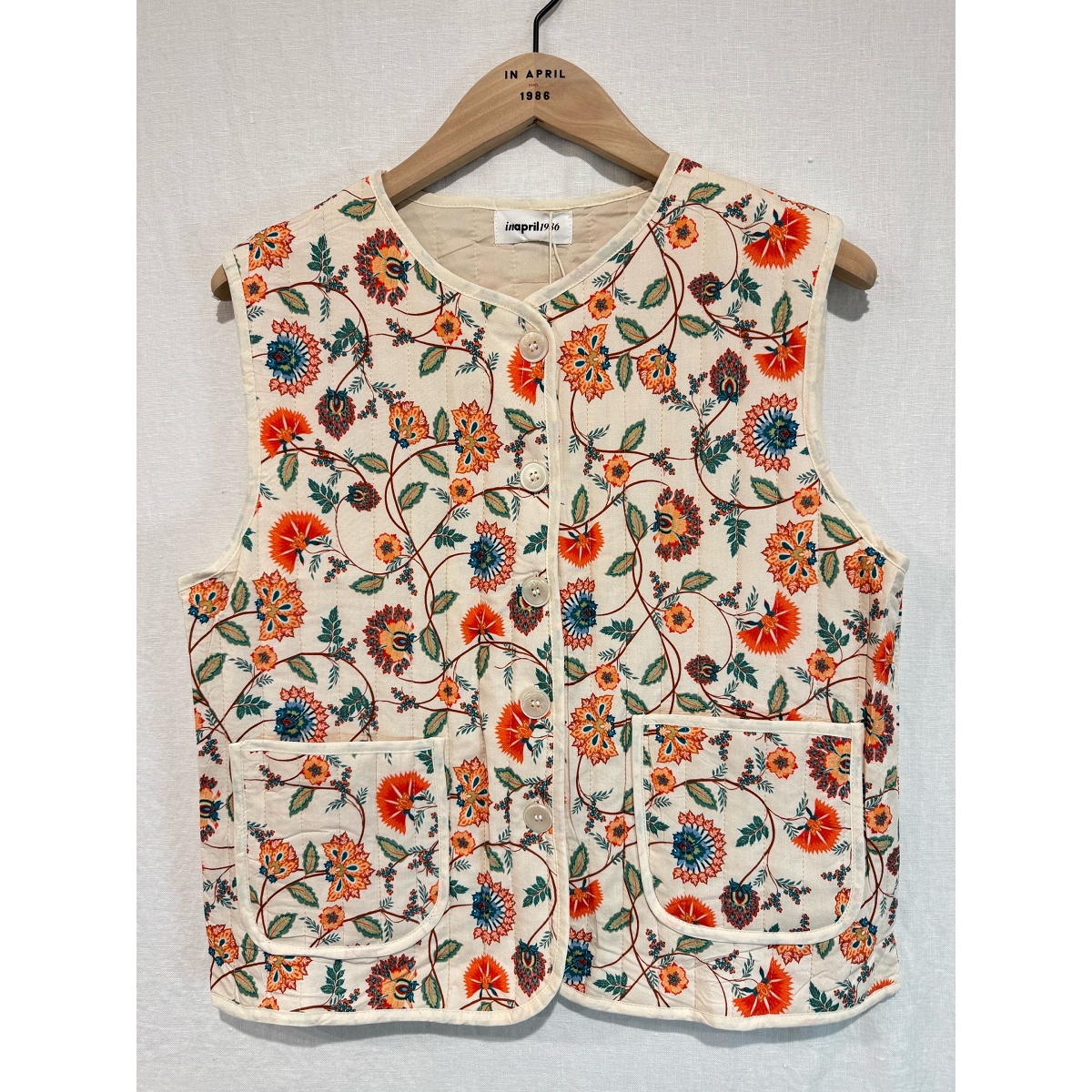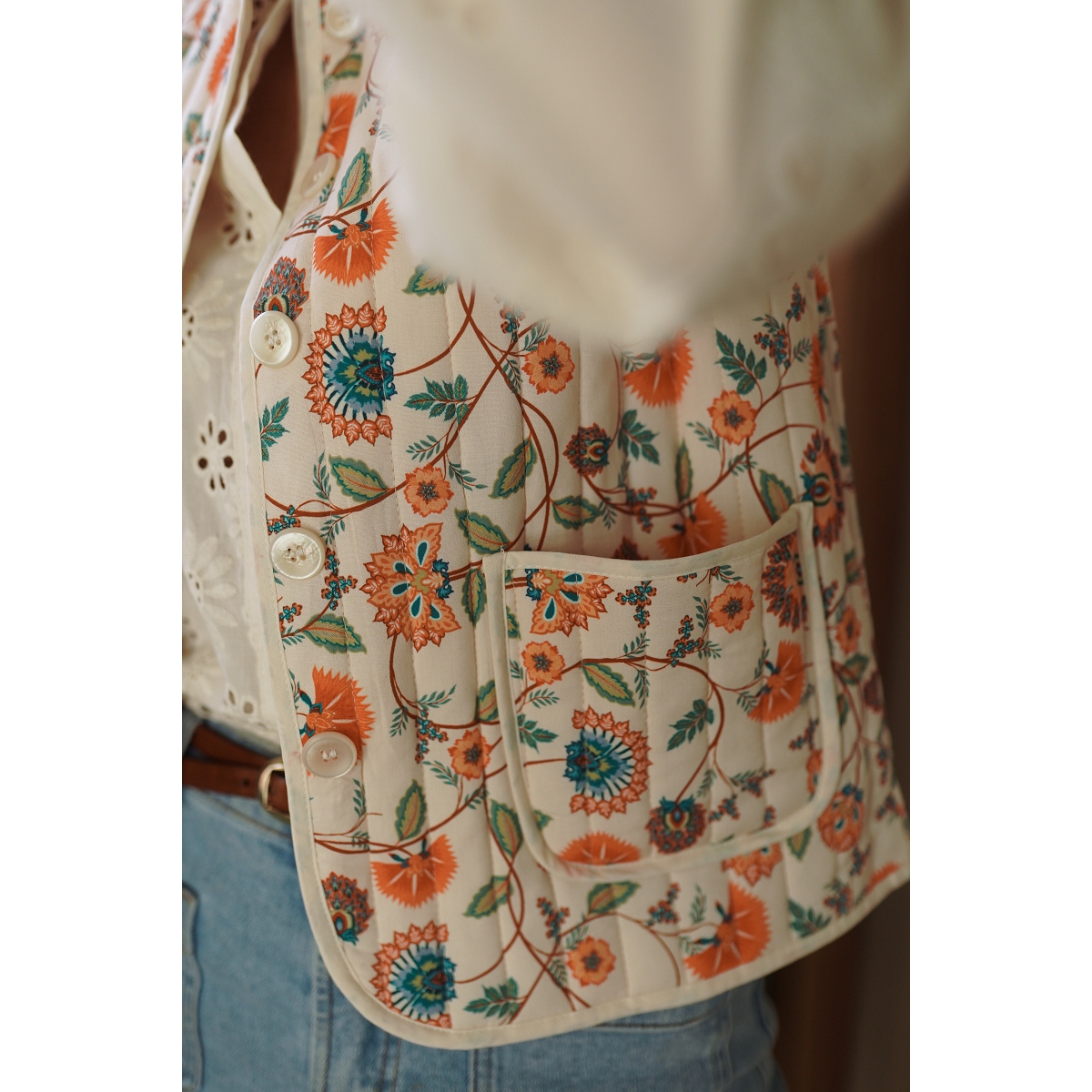 Scarpy creation gilet fleuri beige