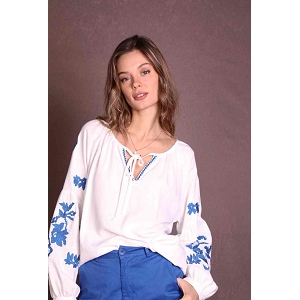 Cette blouse-chemisier a une coupe flatteuse pour la silhouette et offre une grande liberté de mouvement.