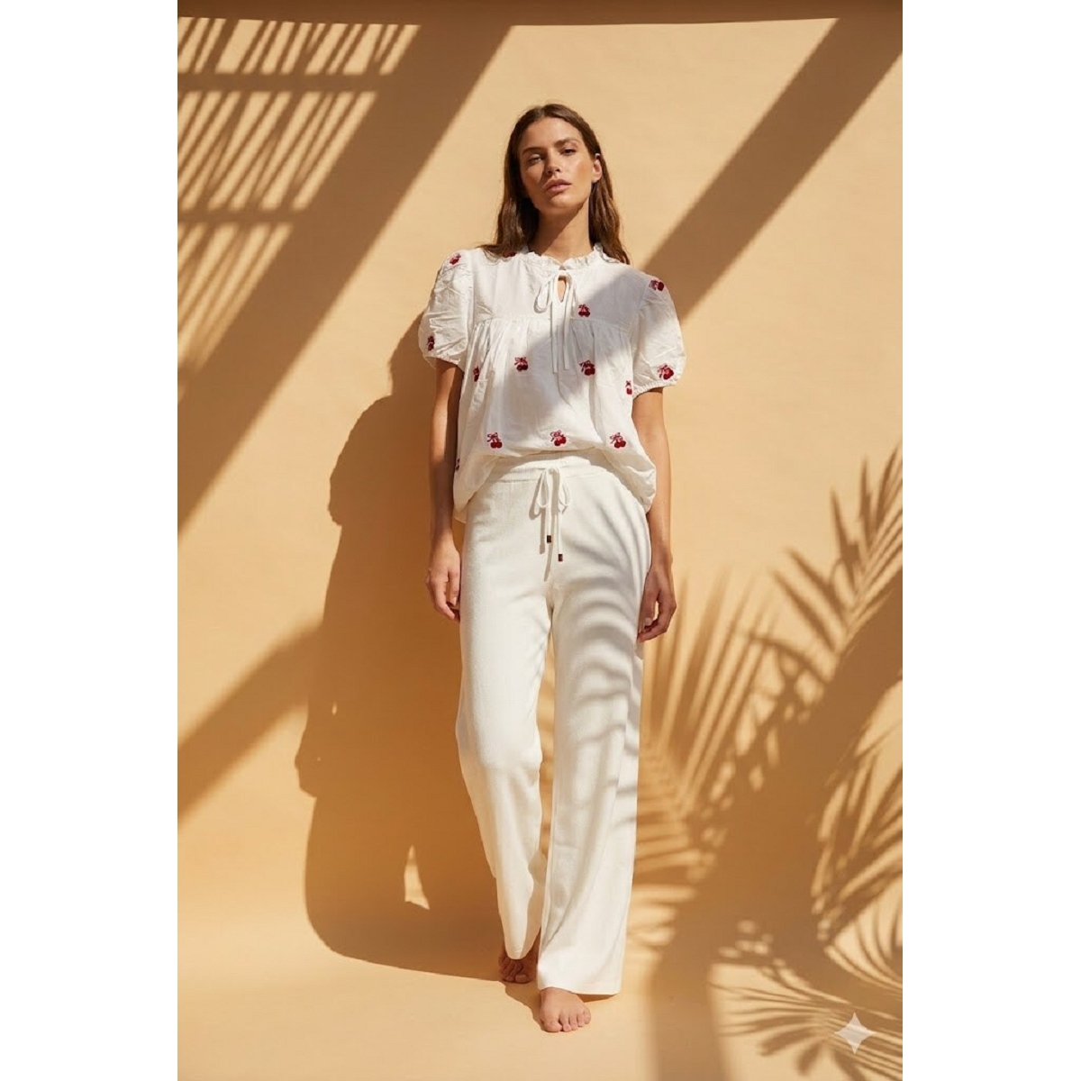Le chemisier affiche également une allure agréablement décontractée.