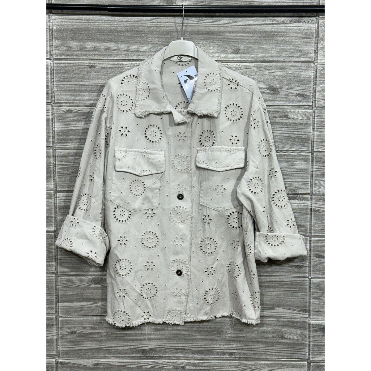 Scarpy creation my chemise veste en jeans brodee yl beige