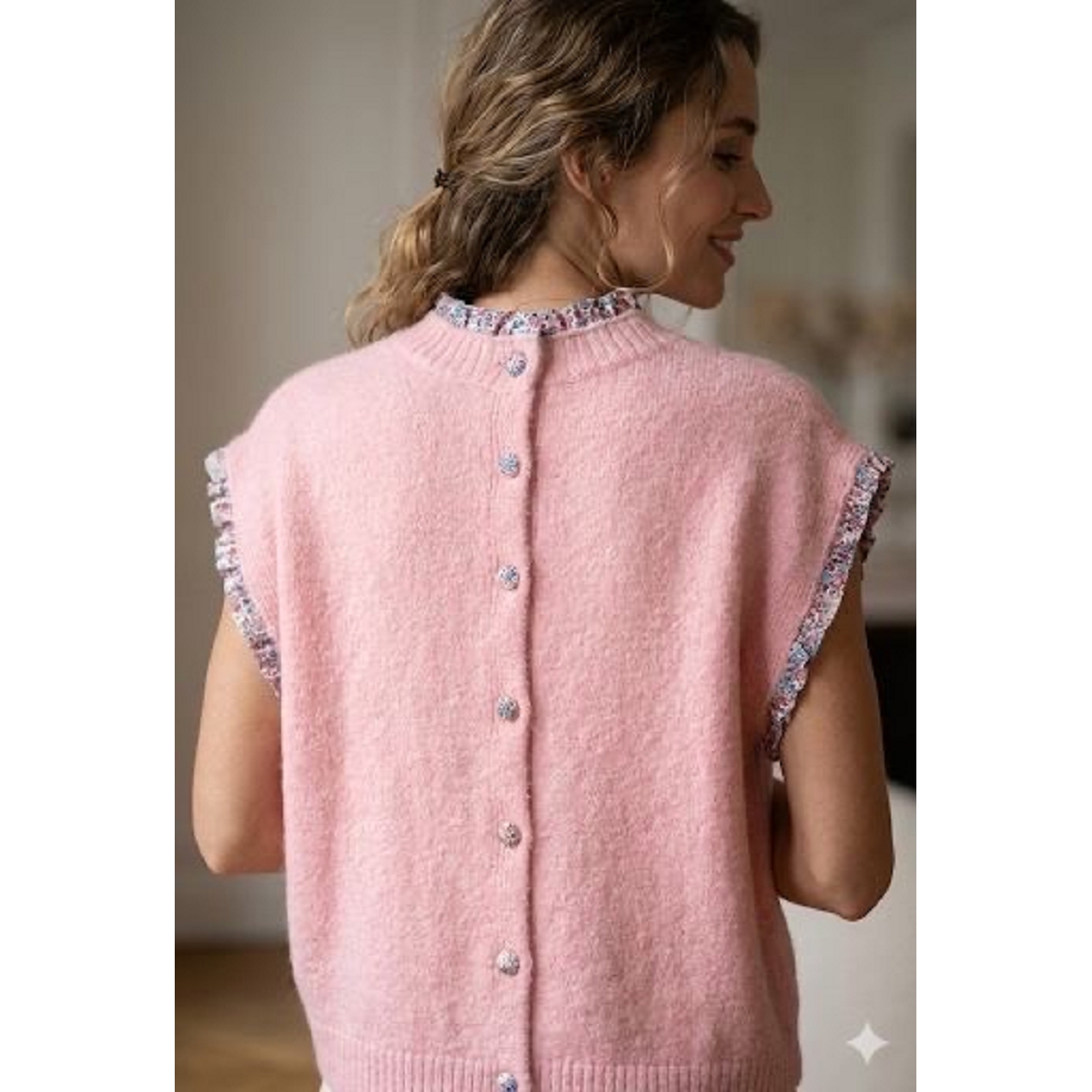 Gilet col V, boutons apparents et manches légèrement ballon.