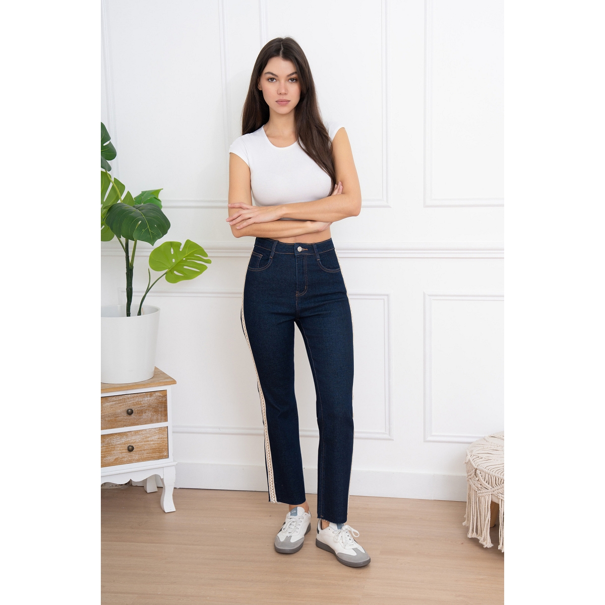 Ces paires de Jeans à la mode sont acclamés pour la forme large de la jambe à la mode et pour la taille haute.