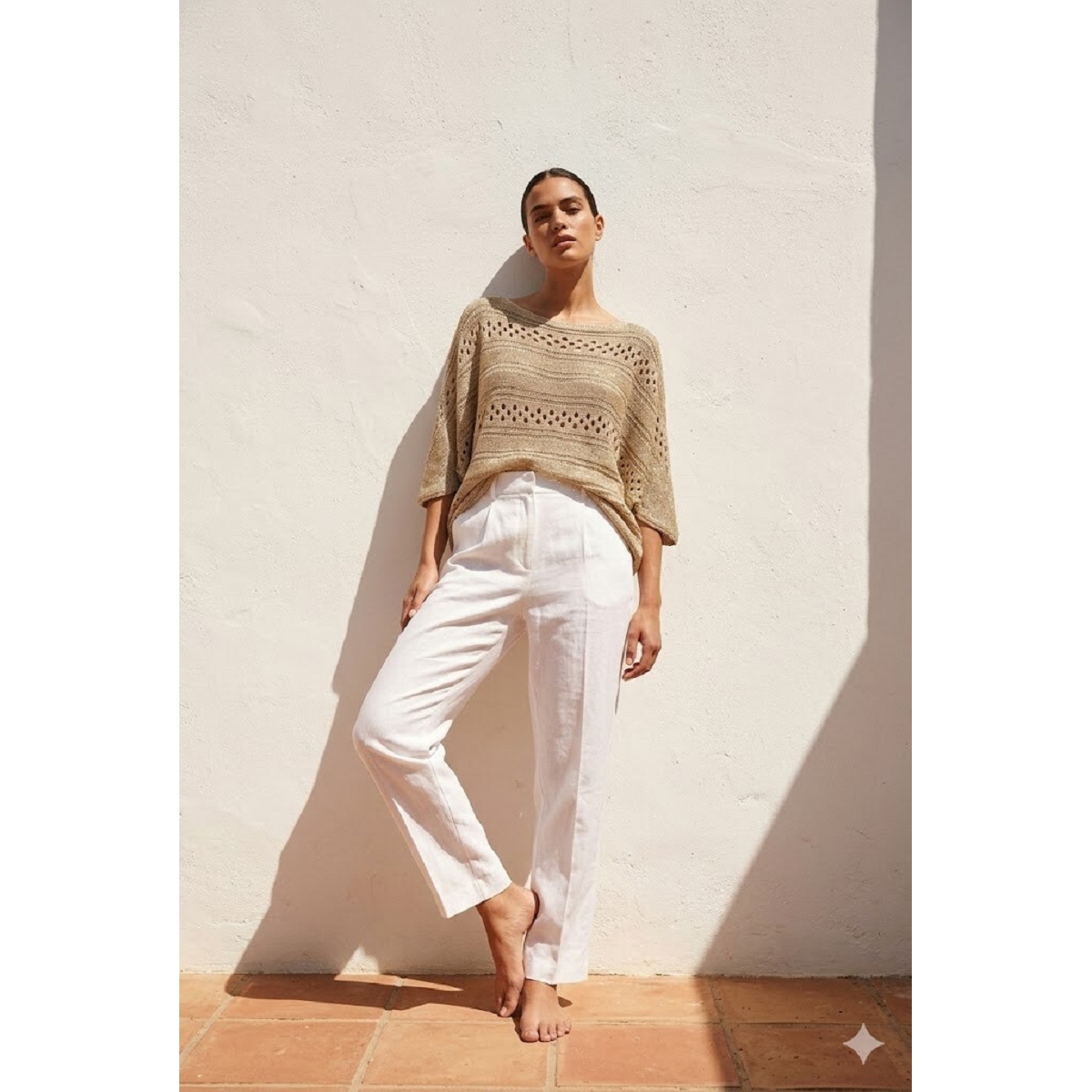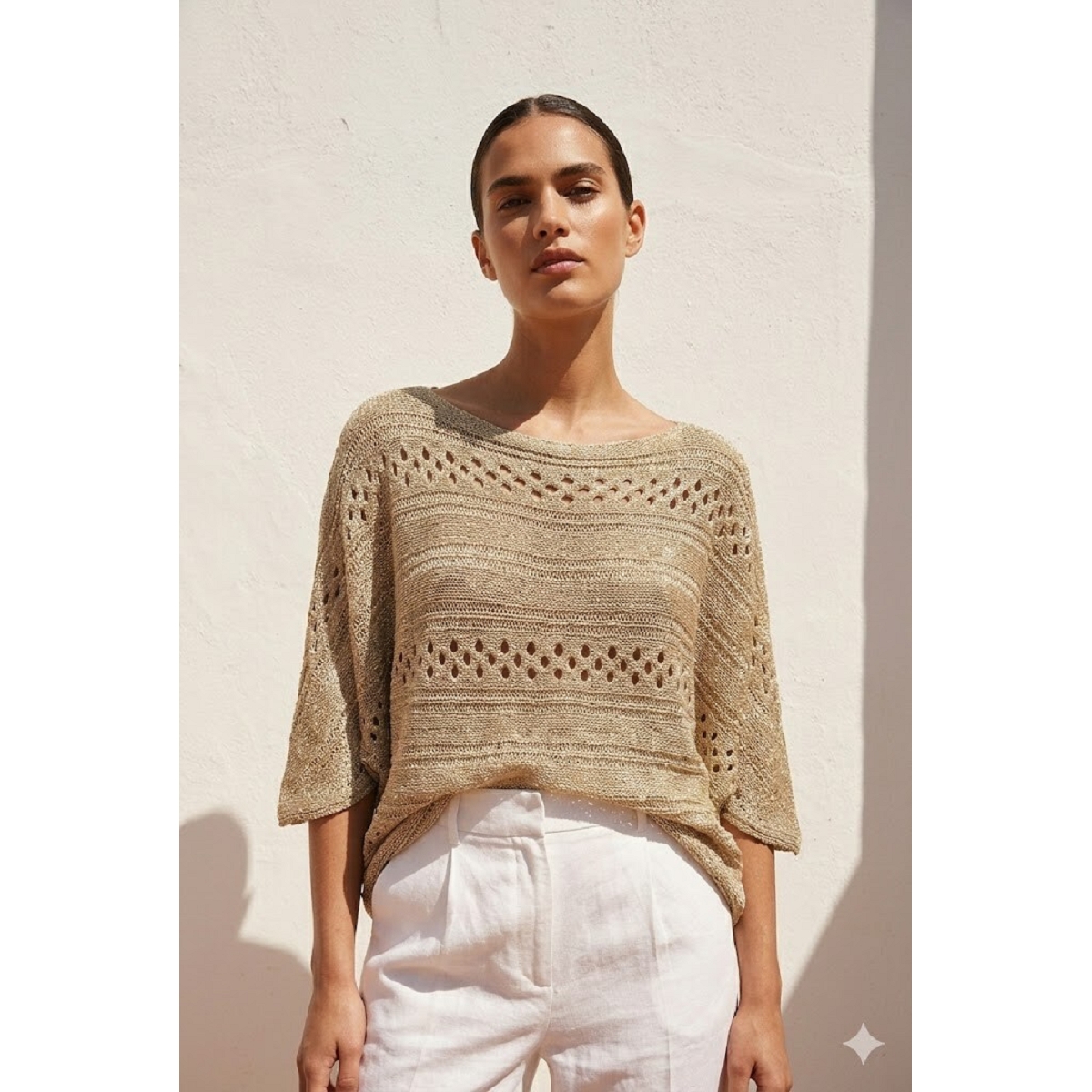 Le Top de couleur unie, aux épaules tombantes, affiche également une allure agréablement décontractée.