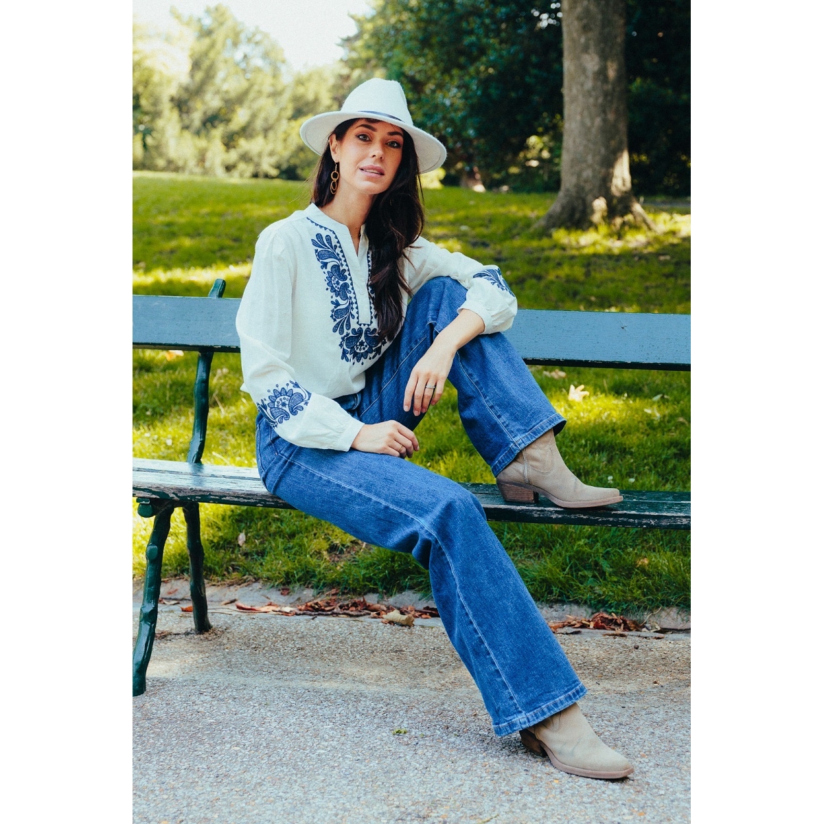Combine-le avec un jean ou une mini-jupe, un sac en cuir et un headband à motifs afin de créer un look tout en simplicité, avec un charme qui lui est propre.