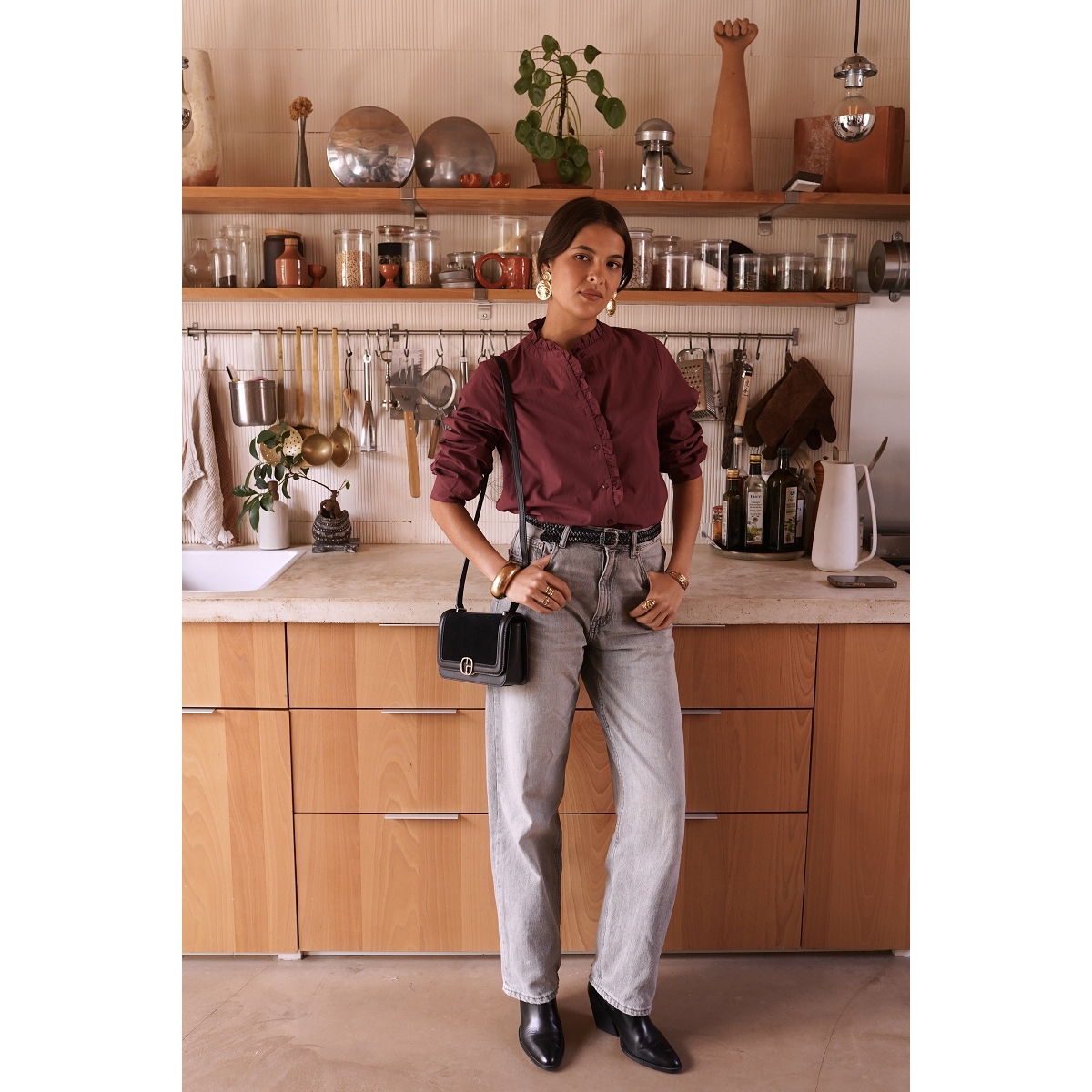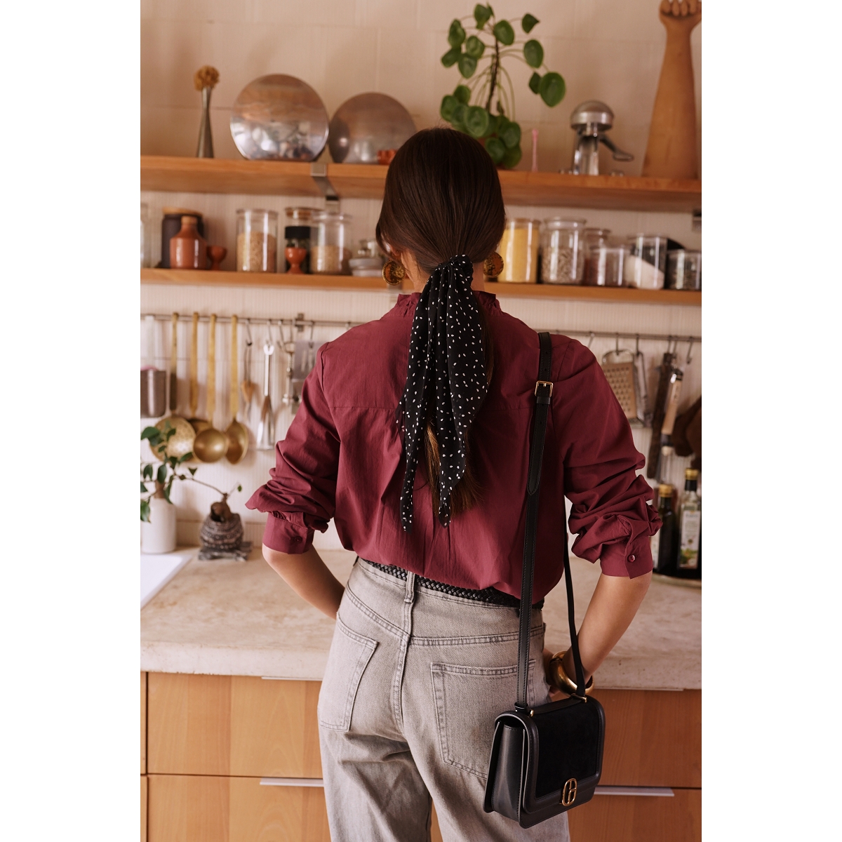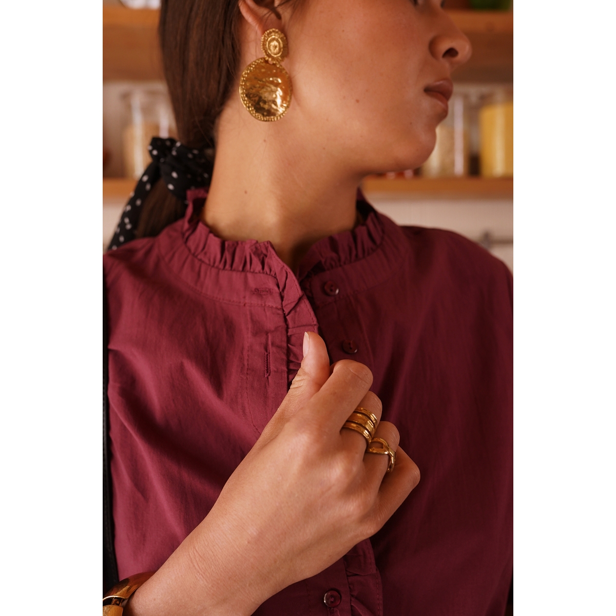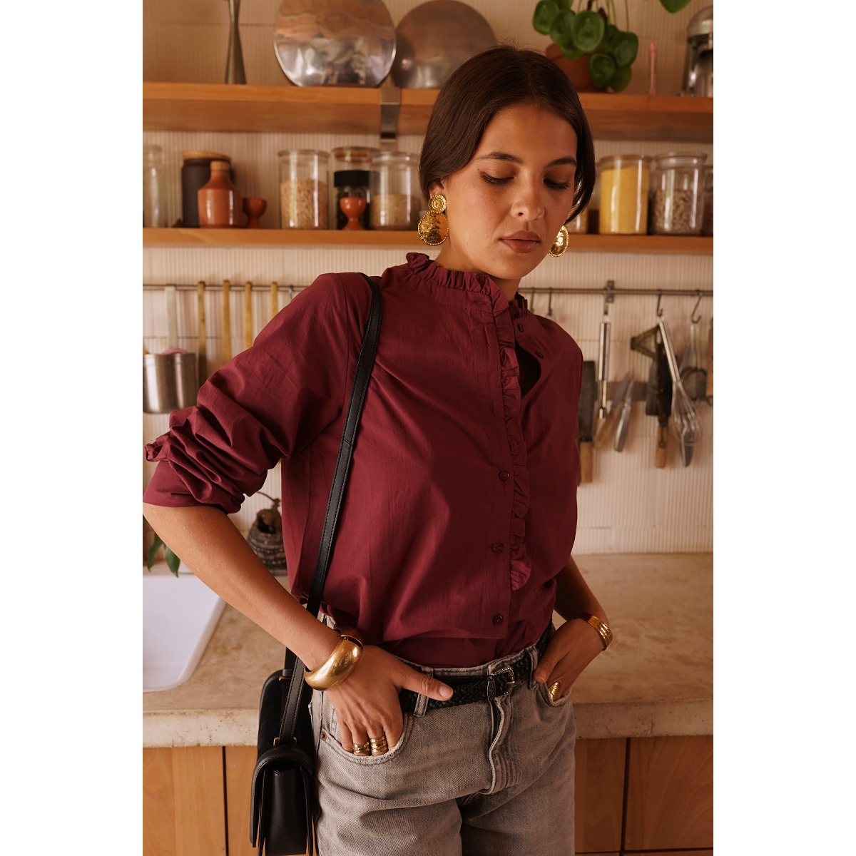 Le chemisier affiche également une allure agréablement décontractée.