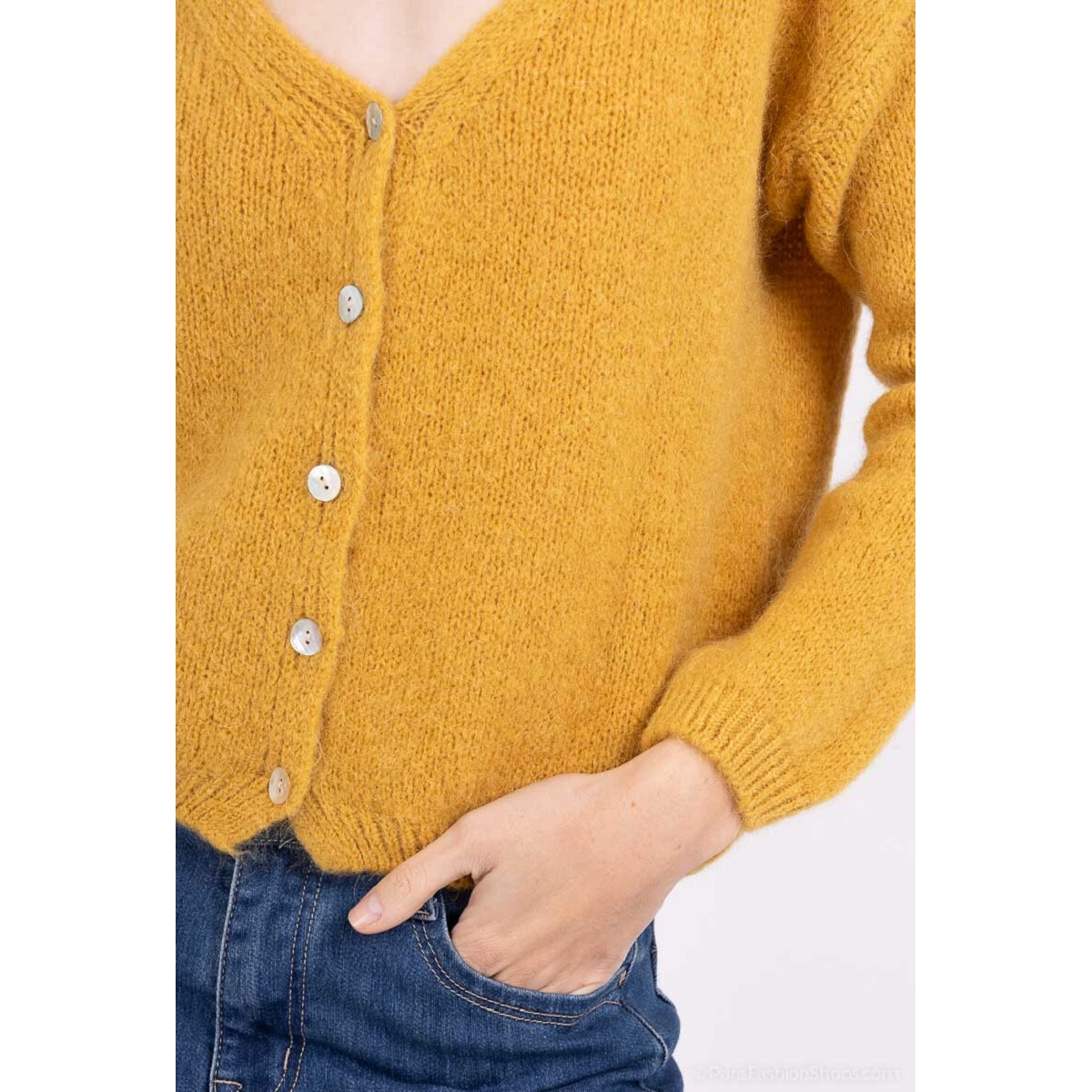 Scarpy creation gilet mohair laine jaune