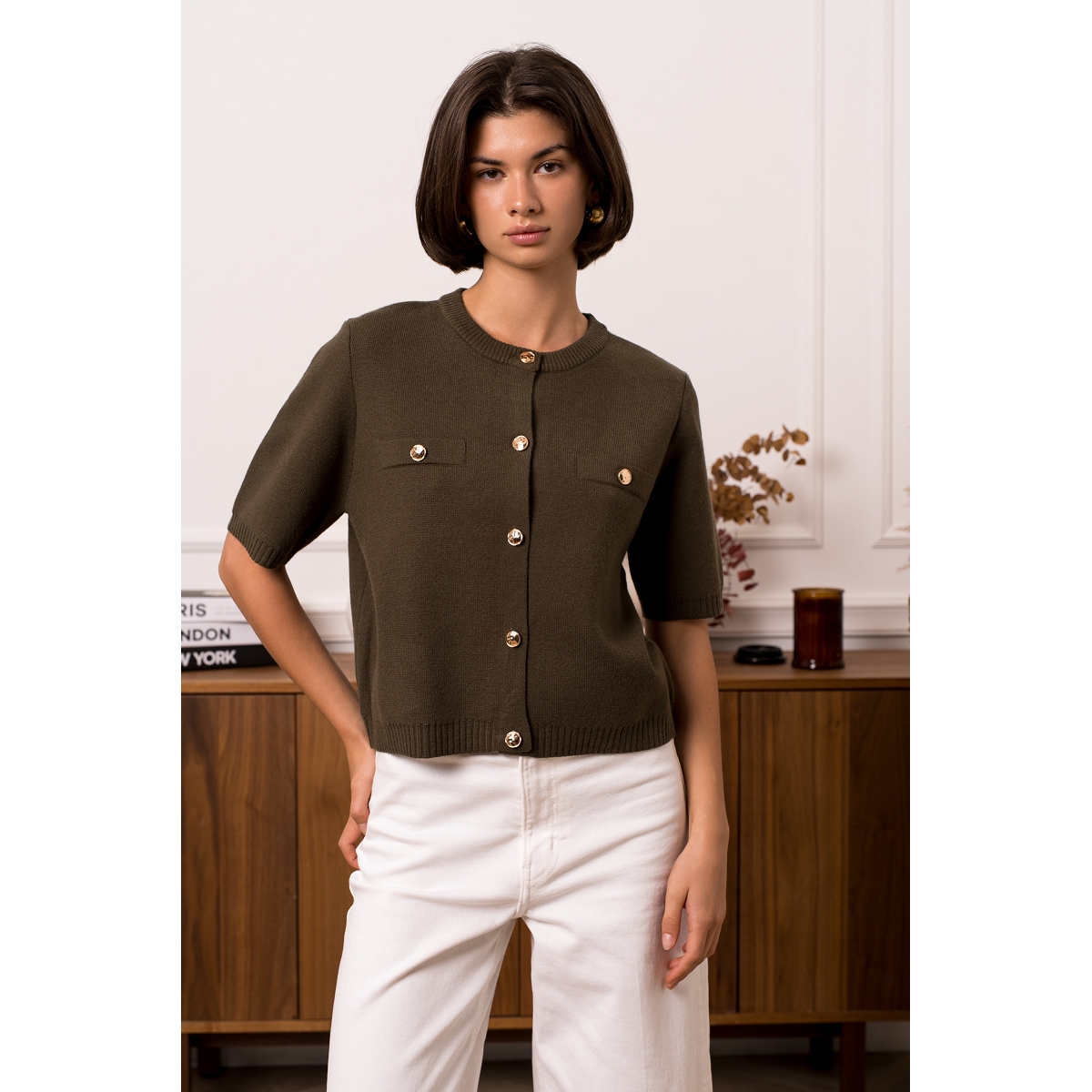 La veste de style qui recouvre les fesses est équipé de poches appliquées a fière allure avec des pantalons serrés et des jupes pour femmes.
