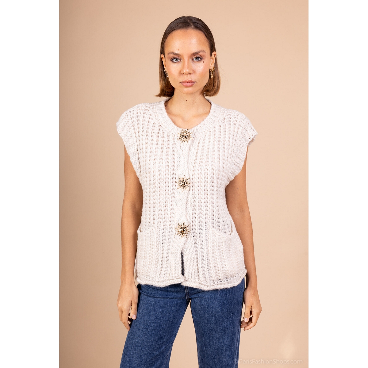 Scarpy creation my gillet gros bouton yl beige