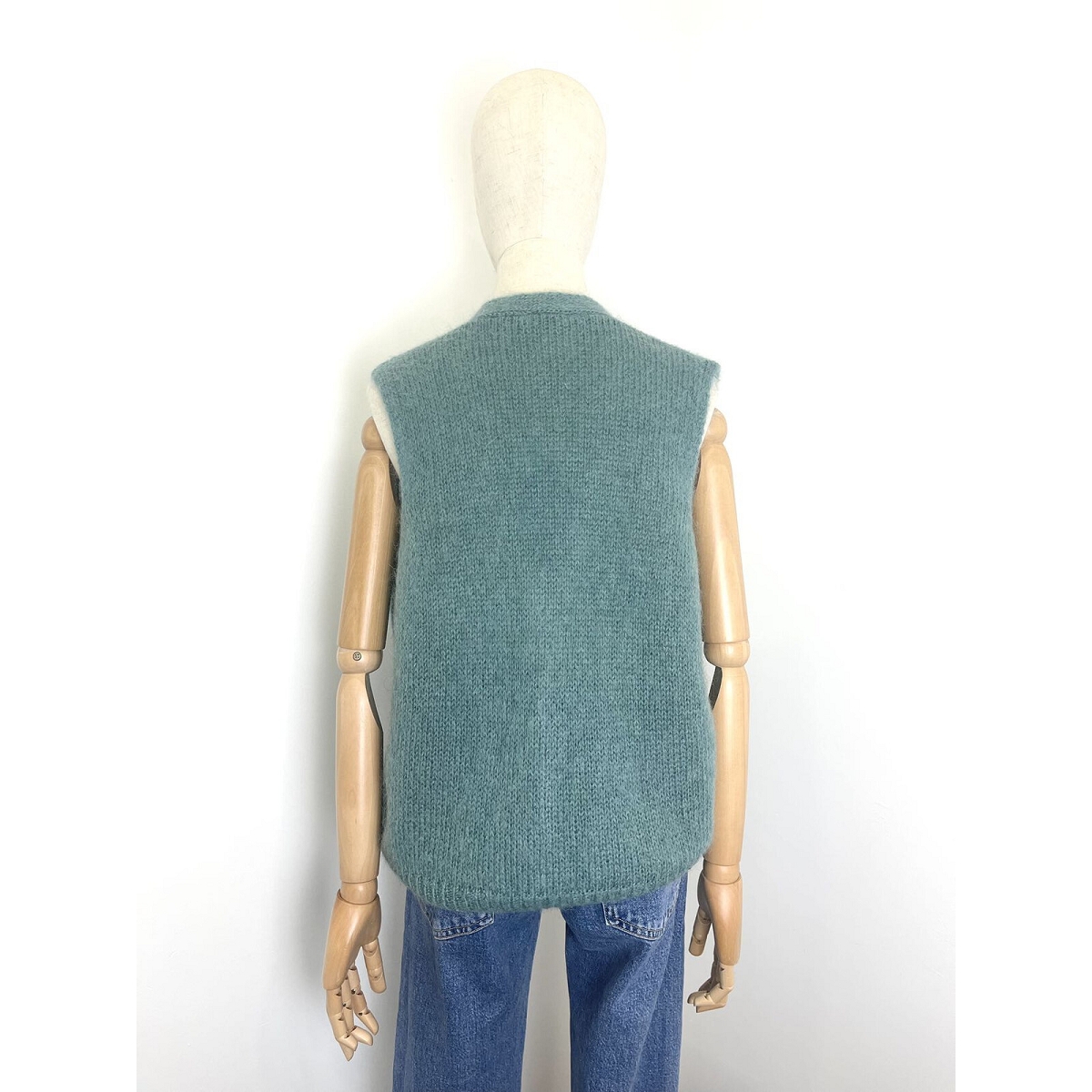 Gilet col V, boutons apparents et manches légèrement ballon.