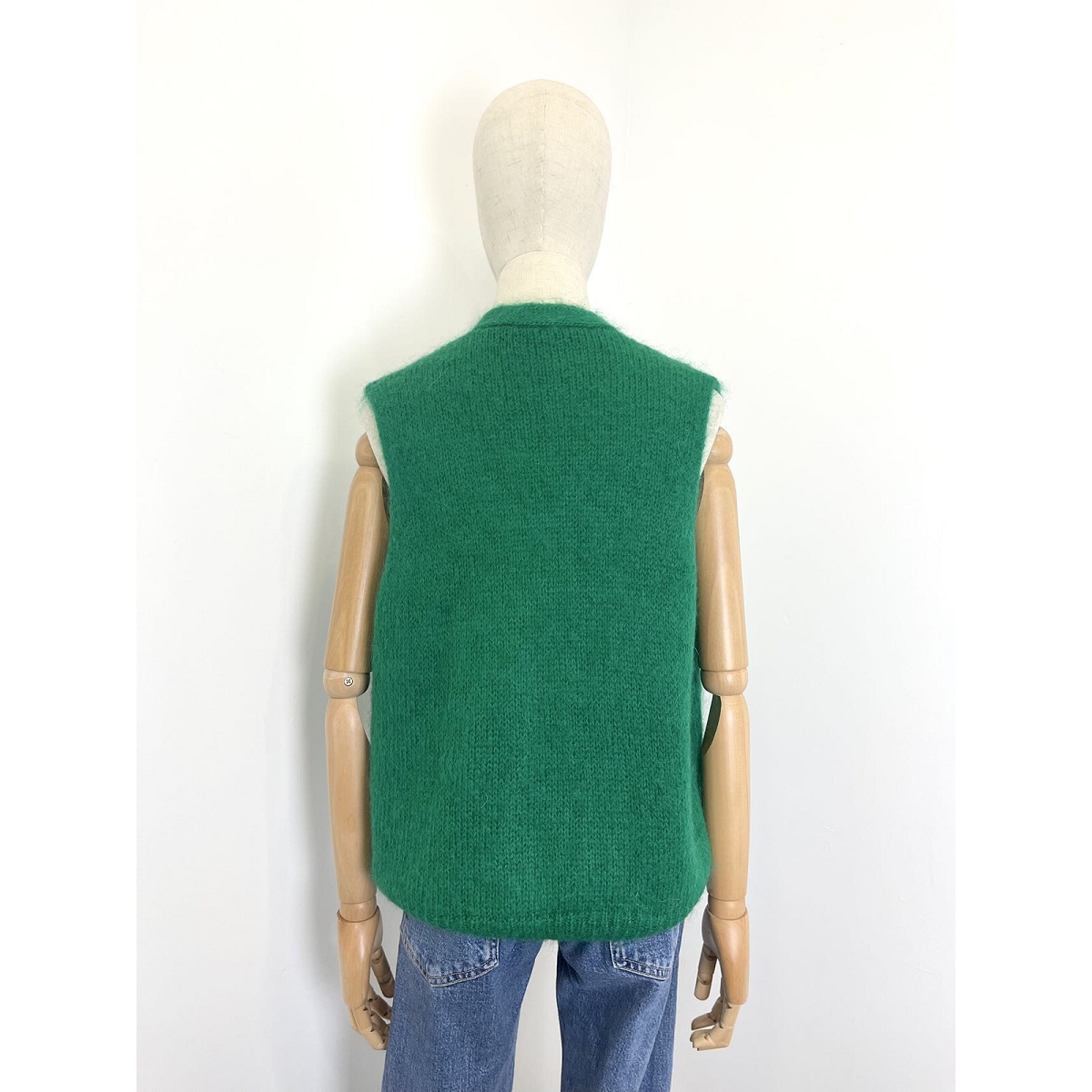 Gilet col V, boutons apparents et manches légèrement ballon.