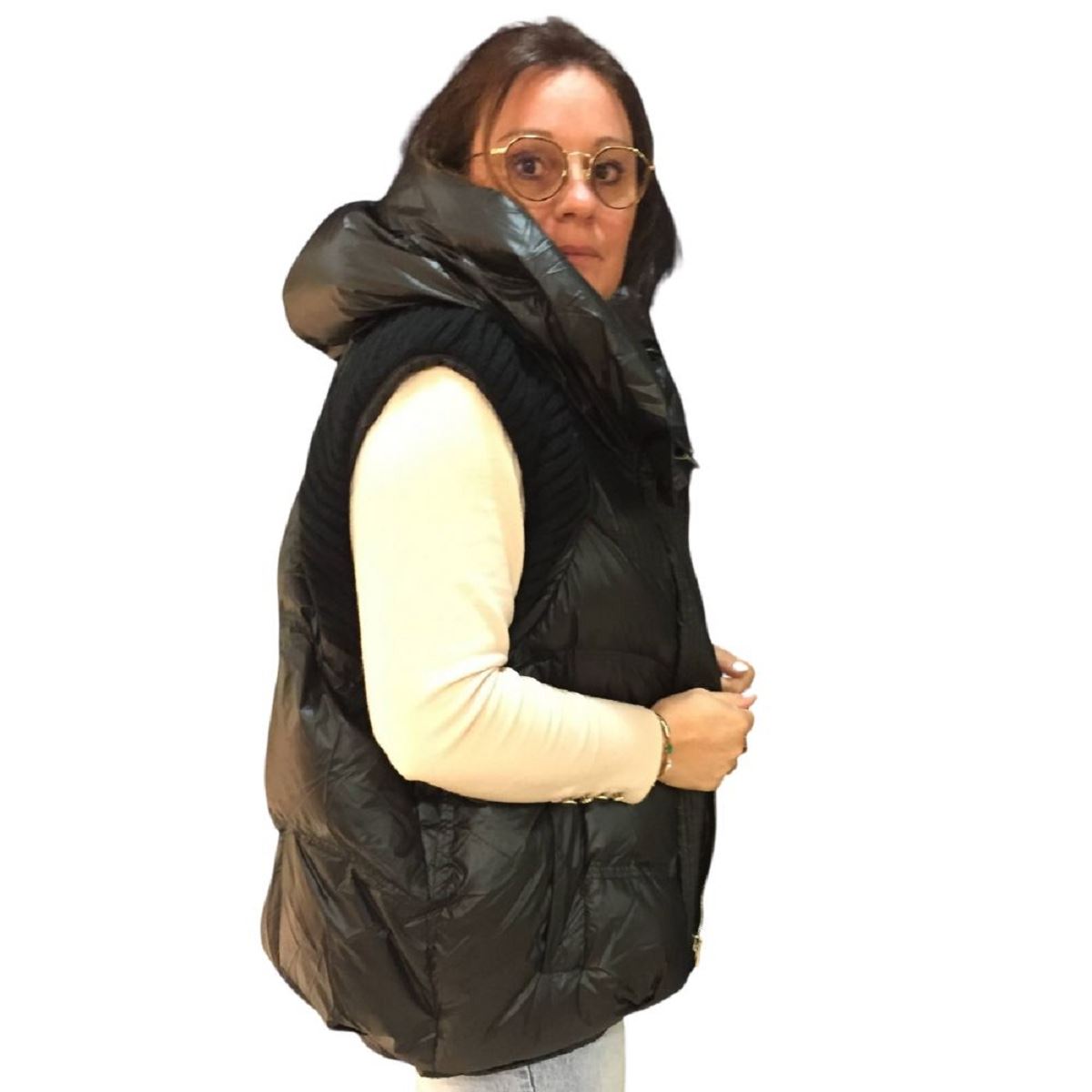 Gilet col V, boutons apparents et manches légèrement ballon.