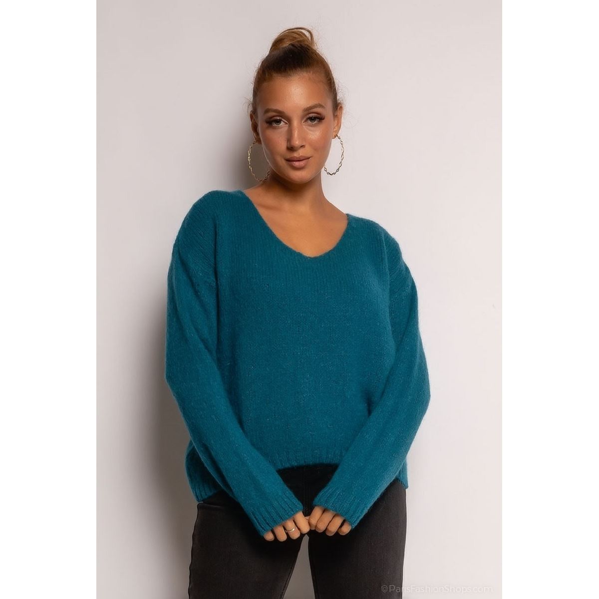 Le pull ample pour femme. Ce pull en maille de laine mélangée est conçu avec un grand col v sur base droite, tricoté dans une maille fantaisie très moelleuse.