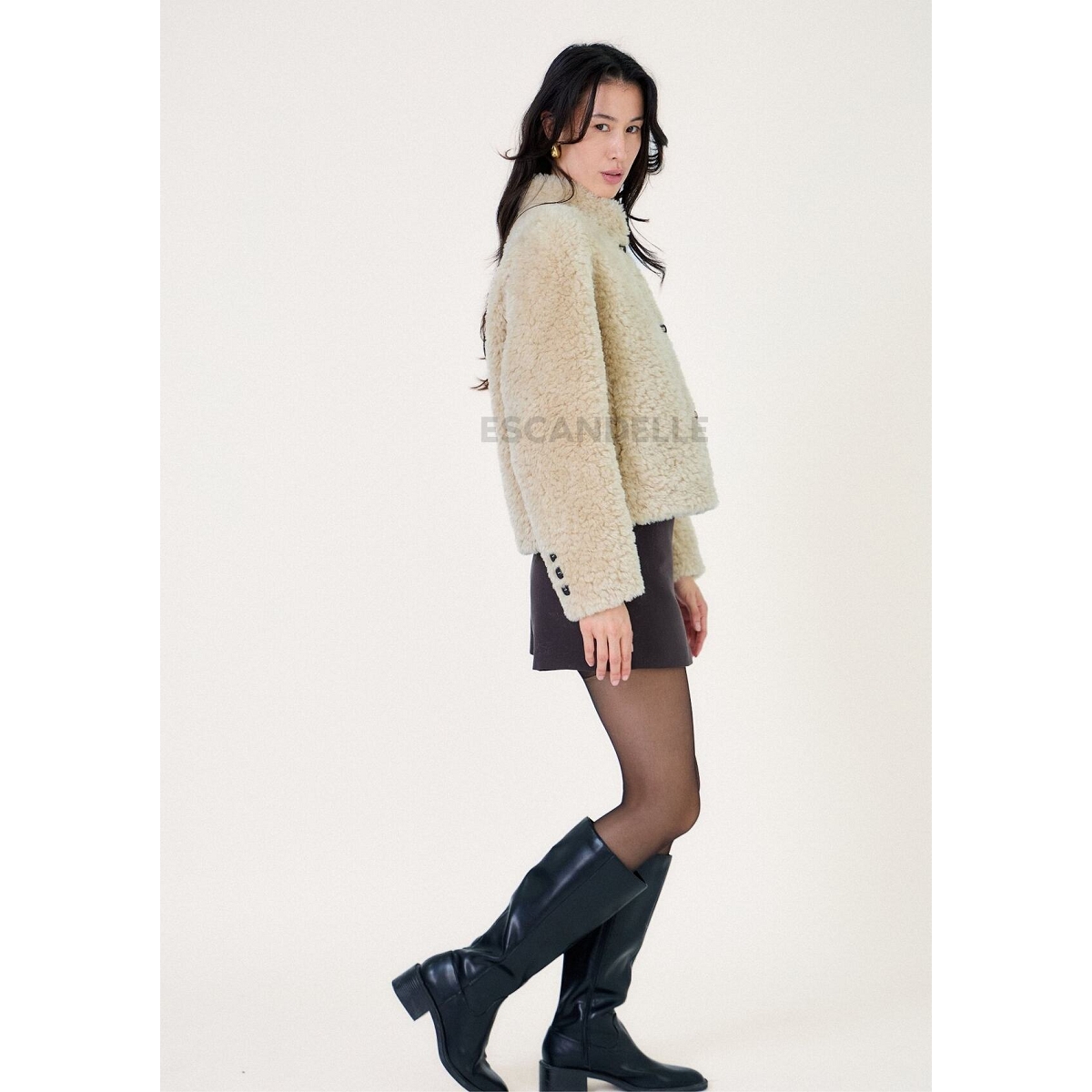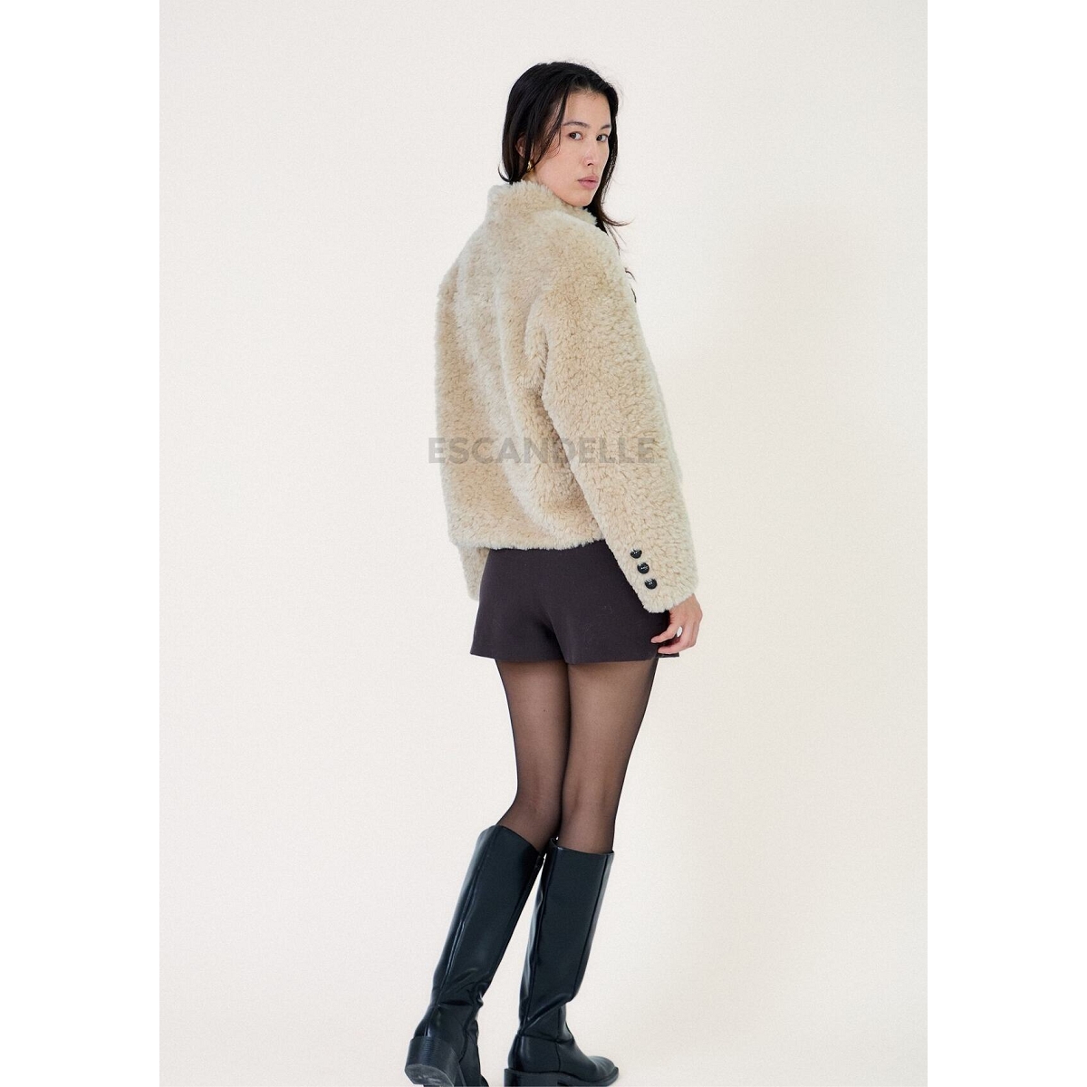 Scarpy creation my veste courte fausse fourrure yl beige