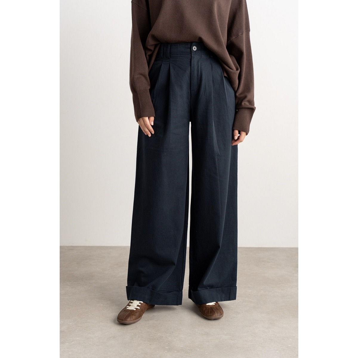 Ces pantalons Chino à la mode sont acclamés pour la forme large de la jambe à la mode et pour la taille haute.